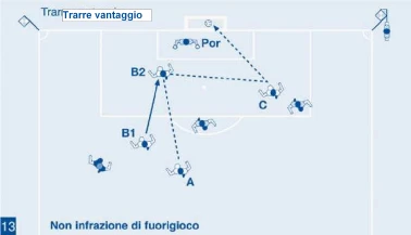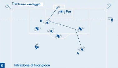 consente che il gioco prosegua quando si verifica un’infrazione e la squadra che non l’ha commessa trarrà beneficio dal vantaggio e punisce l’infrazione se il vantaggio previsto non si concretizza nell’immediatezza o entro pochi secondi