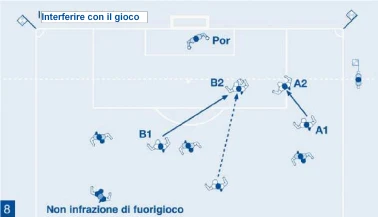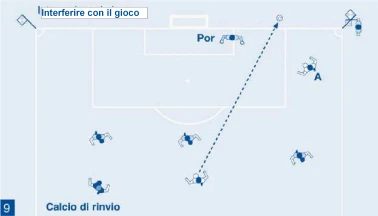 - interrompere il gioco (e riprenderlo con una propria rimessa) soltanto se l’elemento esterno interferisce con il gioco, tranne che il pallone stia entrando in porta e l’interferenza non impedisca a un difendente di giocare il pallone, la rete sarà convalidata se il pallone entra in porta (anche se c’è contatto con il pallone) a meno che l’interferenza non sia stata causata dalla squadra attaccante