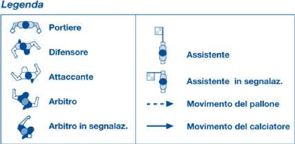 Oltre alla gestualità codificata ed esemplificata nelle illustrazioni di pagina 47 e 48, l’arbitro non è tenuto a rappresentare con gesti le proprie decisioni. Le sue indicazioni devono essere semplici, chiare, immediate e tese ad assicurare continuità al gioco.