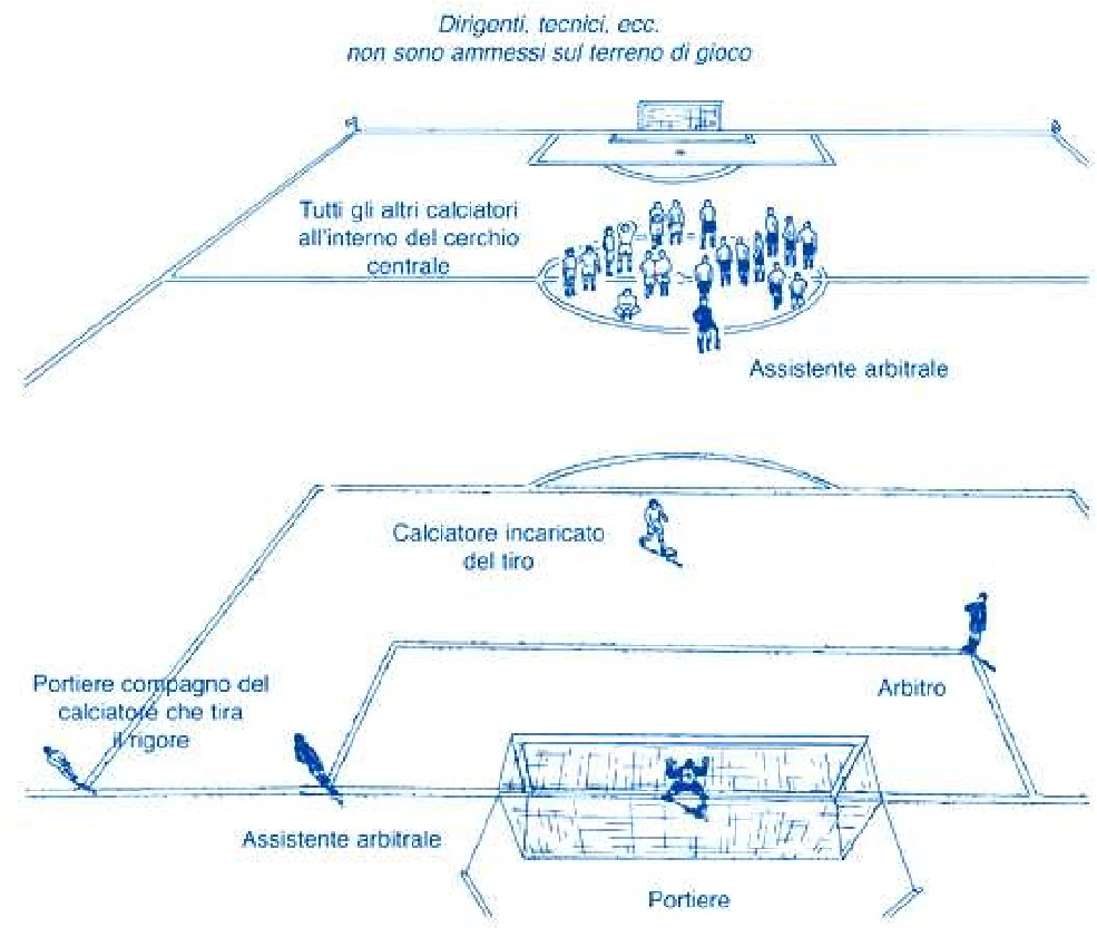 - ha l’autorità di adottare provvedimenti disciplinari dal momento in cui entra sul terreno di gioco per il sopralluogo pre-gara fino al momento in cui lo abbandona dopo la fine della gara (inclusi i tiri di rigore). Se, prima di entrare sul terreno di gioco all’inizio della gara, un calciatore commette un’infrazione da espulsione, l’arbitro ha l’autorità di impedire al calciatore di prendere parte alla gara (vedi Regola 3 punto 6); l’arbitro riporterà ogni altra scorrettezza (nel proprio rapporto di gara)